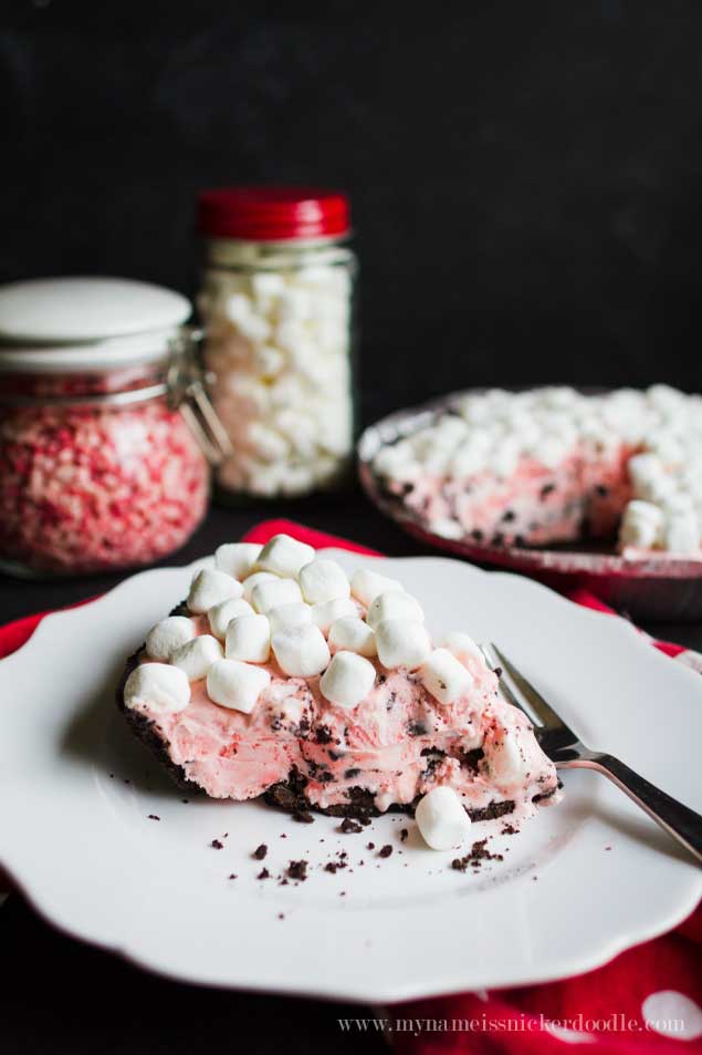 And not every holiday treat needs to be warm. This Chocolate Peppermint Marshmallow Pie is made with yummy ice cream so it can be made ahead and served frozen. It would even be great idea to have a couple on hand to give to friends that drop by. Just make a couple extra, tie a ribbon around them, and keep them in your freezer.