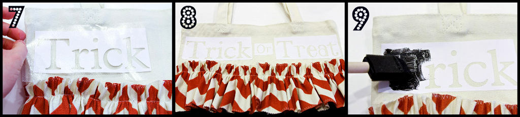 Step 7: Make your “Trick or Treat” stencil. I used a Cricut machine and vinyl to make my stencil but you can make one by hand using an exacto knife and freezer paper.
